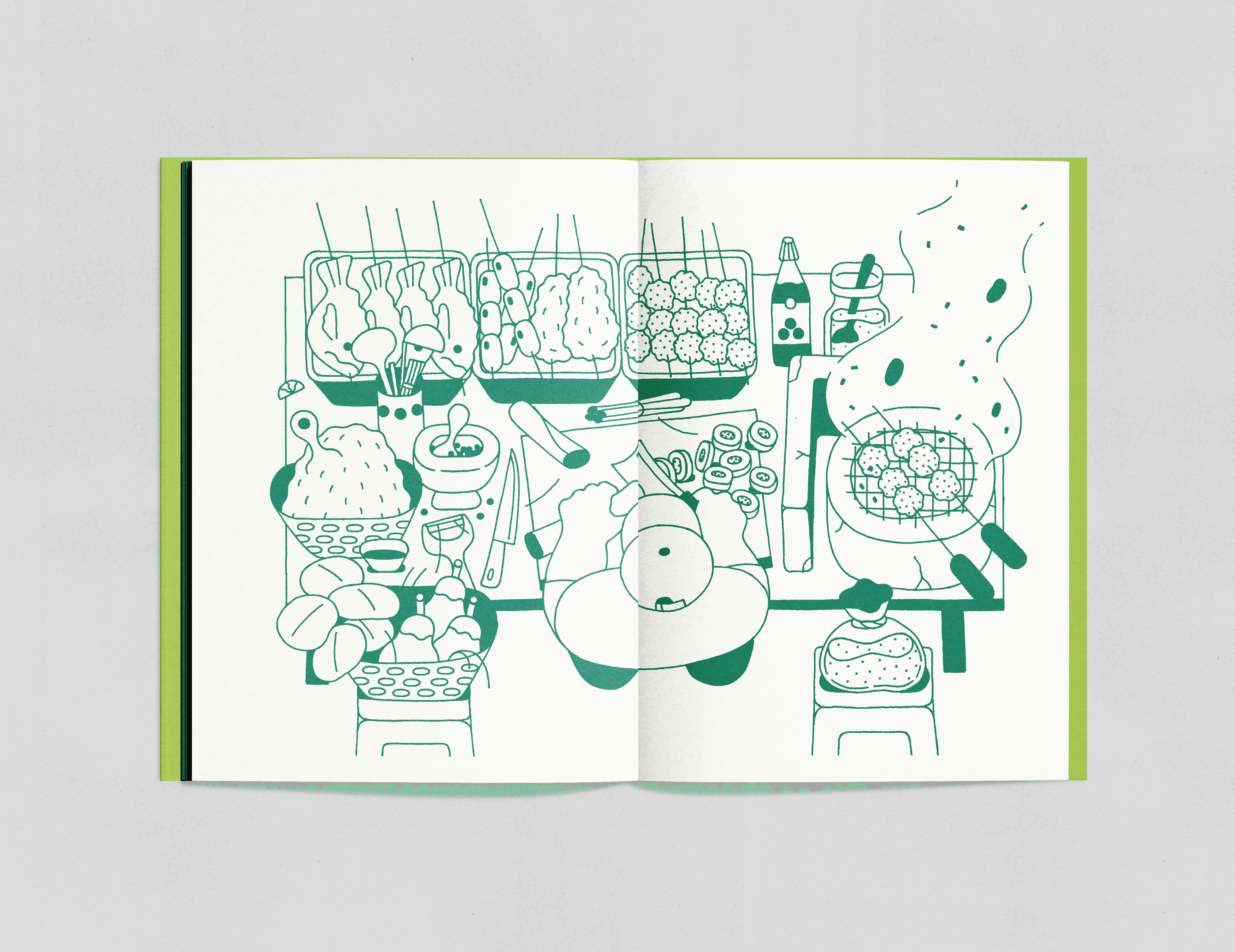 Grafisk design og co-art direction for Originalkopi's Bang Cook Book. Boken er en kokebok med syv thai-oppskrifter, der hvert oppskrift er ledsaget av illustrasjoner som visualiserer smaken til retten.