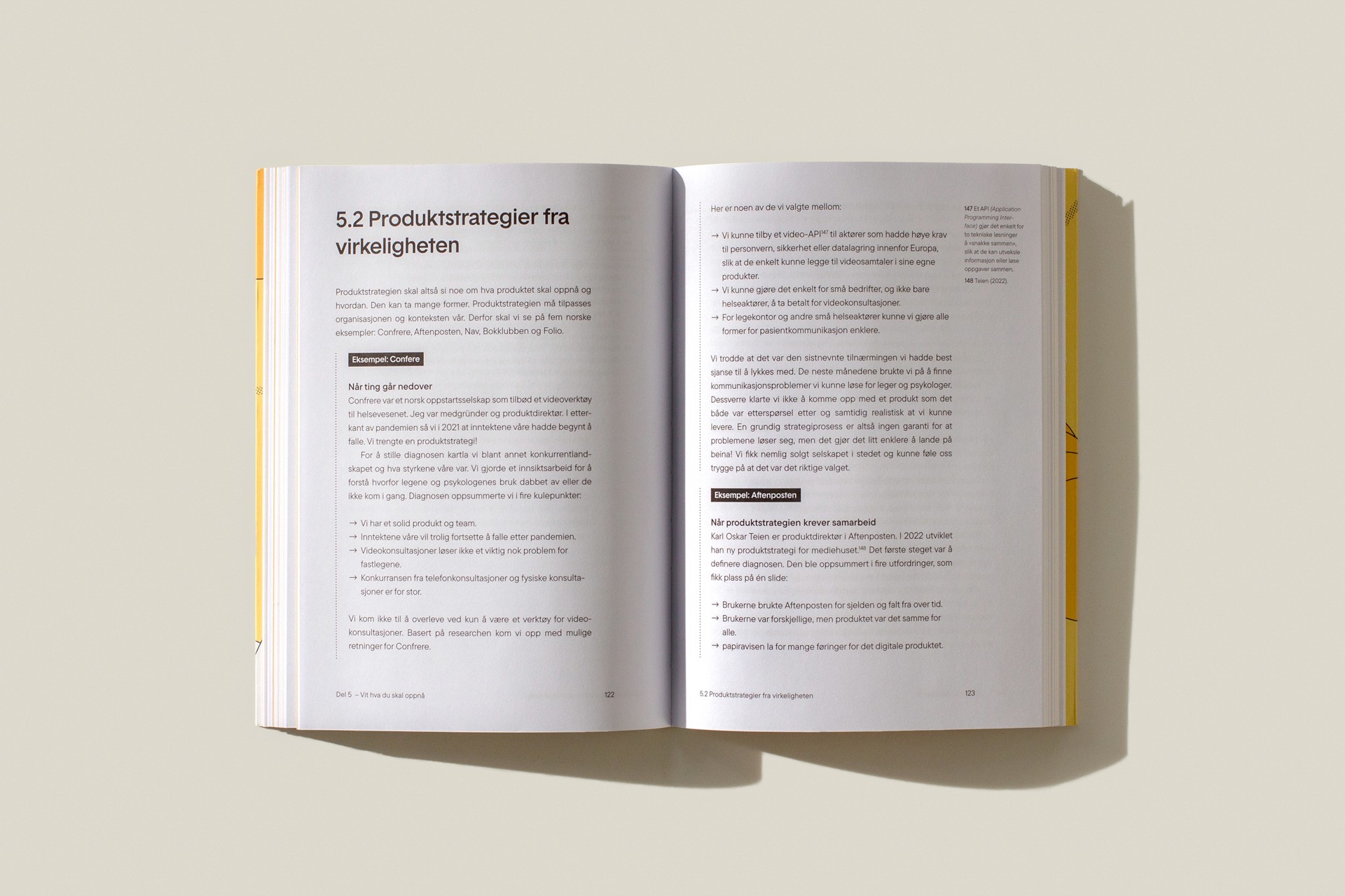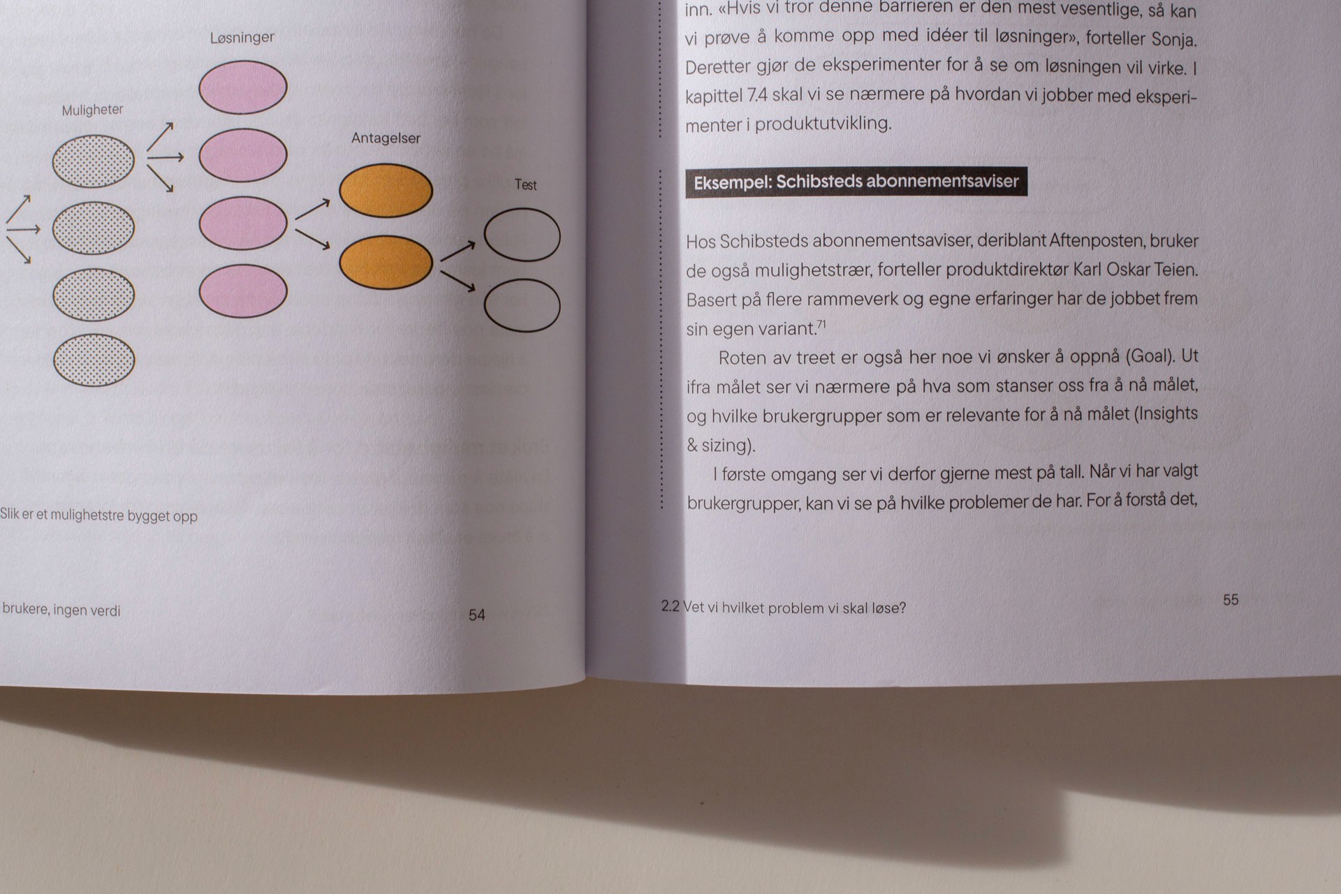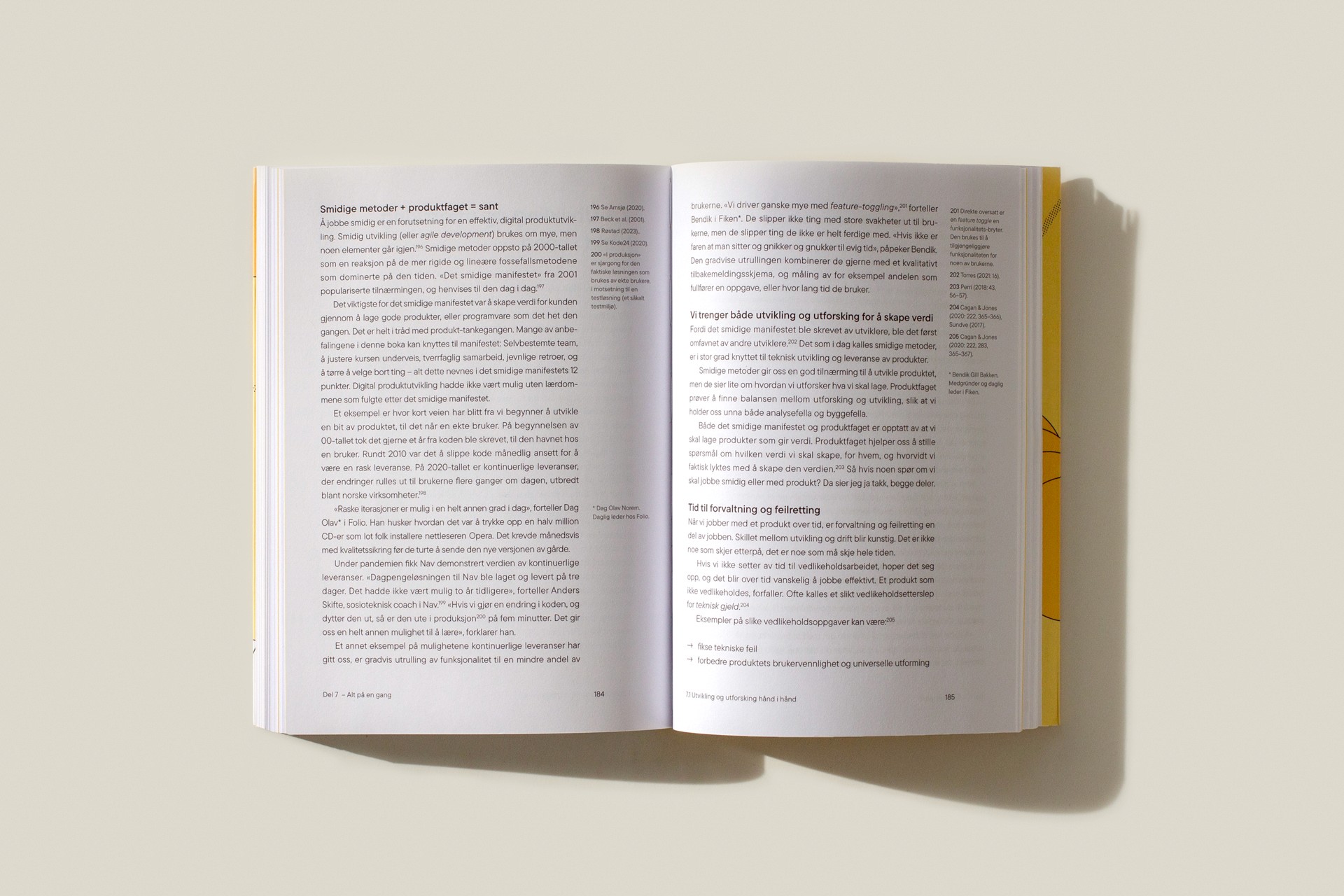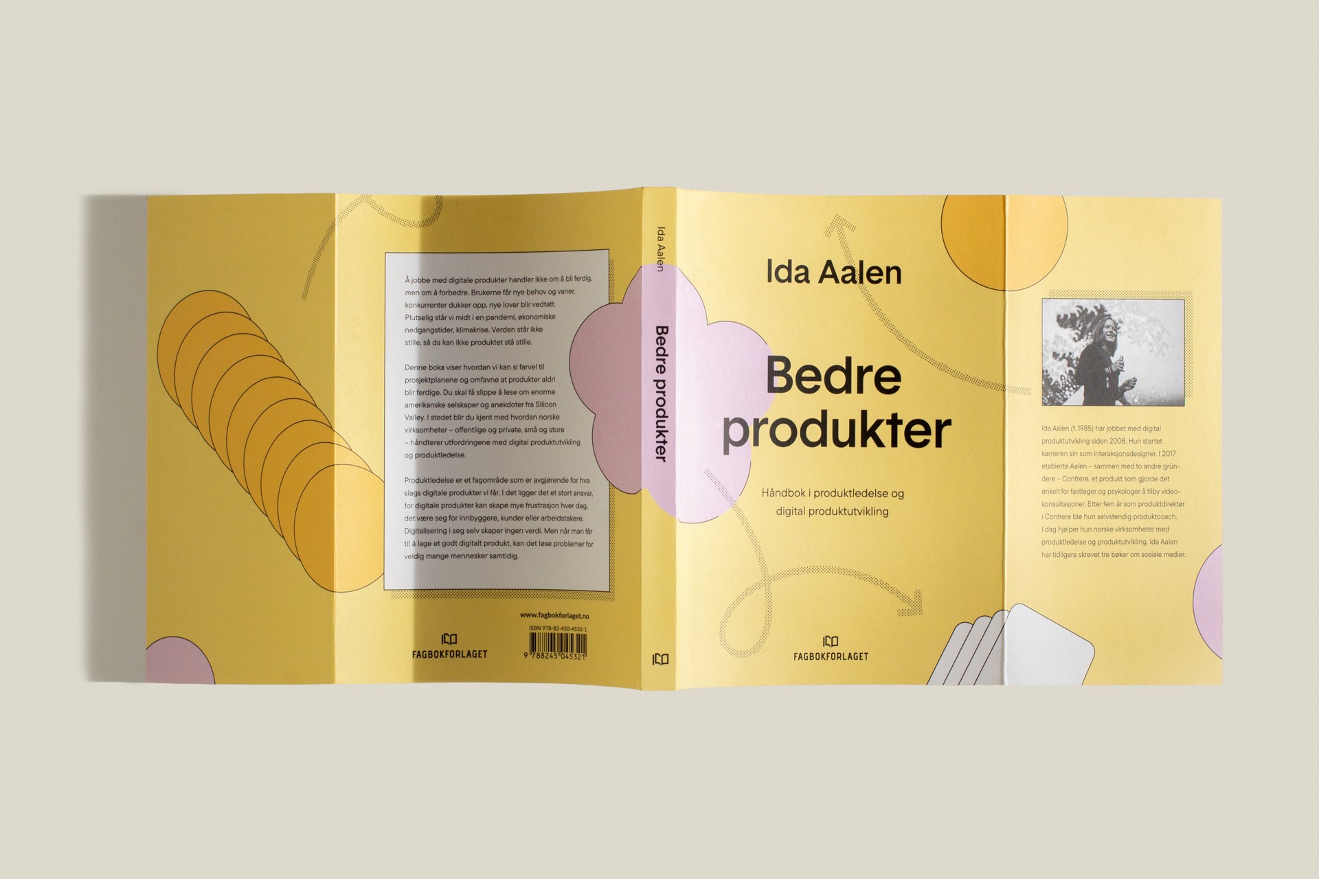 Omslag og sats for Ida Aalens fagbok om produktledelse. Boken tar for seg hvordan norske virksomheter – offentlige og private – håndterer utfordringene med digital produktutvikling og produktledelse.