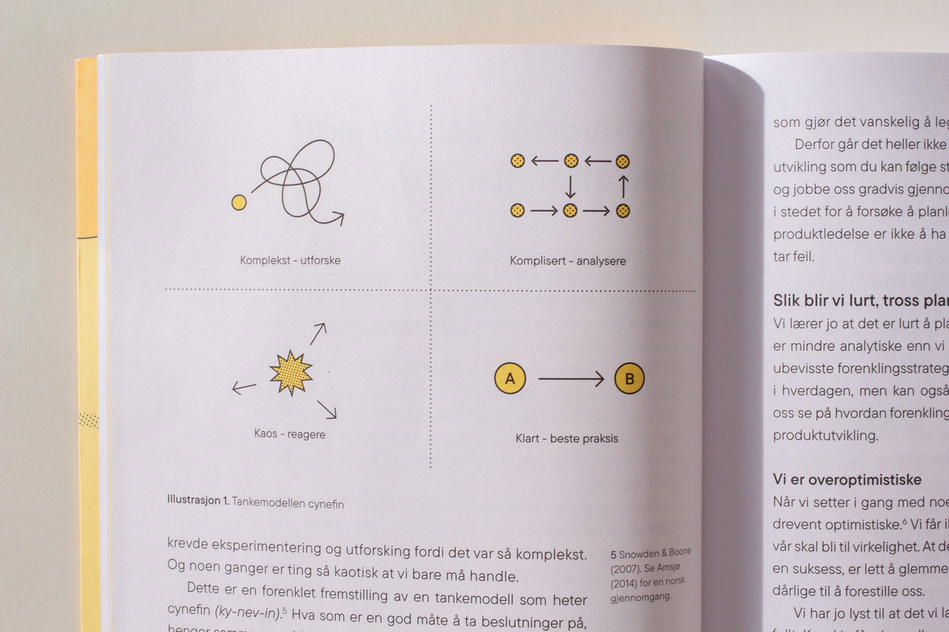 Prosessene rundt produktdesign er sjelden forutsigbare, og derfor ble det visuelle temaet for bokdesignet en ikke-lineær prosess. Dette kommer blant annet til uttrykk på omslaget, som er inspirert av estetikken i flytdiagrammer.